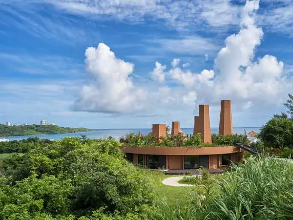 The design by architect Hiroshi Nakamura is wonderful, featuring an entrance inspired by the traditional Okinawan worship hall 'Kami Ashagi' and Japanese-modern guest rooms equipped with 'Kazetsuki' (wind chimneys) reaching up to 8 meters high.