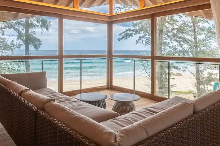 'YUUNA -Yuina-' in Tokunoshima Town, Kagoshima Prefecture, is a lovely inn located in Satoku Beach Park. It consists of five private villas, all detached and offering ocean views. Each villa also comes with a private sauna.