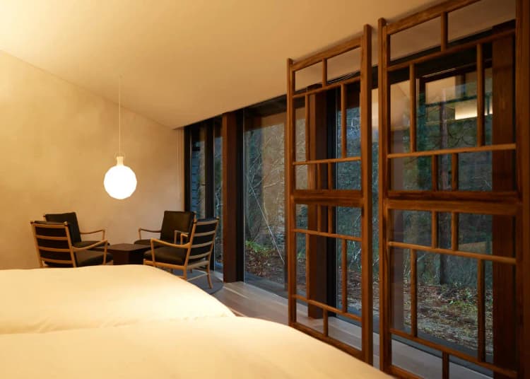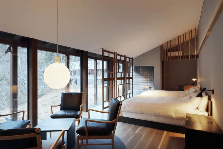 Three cottages are scattered within the grounds, enveloped by the valley's nature, allowing guests to spend warm and tranquil time feeling the four seasons of the mountains.