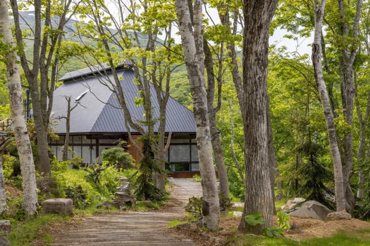 The inn is located within the forest of Niseko-Shakotan-Otaru Kaigan Quasi-National Park, offering views of Mt. Yotei and the Niseko mountain range. From the large windows of the guest rooms, guests can enjoy a panoramic view of nature changing with time, enjoying the scenery of the four seasons.